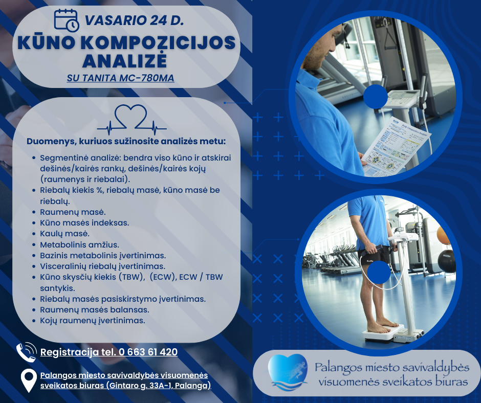 Kviečiame kūno kompozicijos analizei segmentiniu kūno kompozicijos analizatoriumi Tanita MC-780 MA. Prietaisas yra sertifikuotas – tinka naudoti gydymo įstaigoje/stacionare – pagal (MDD) medicinos …