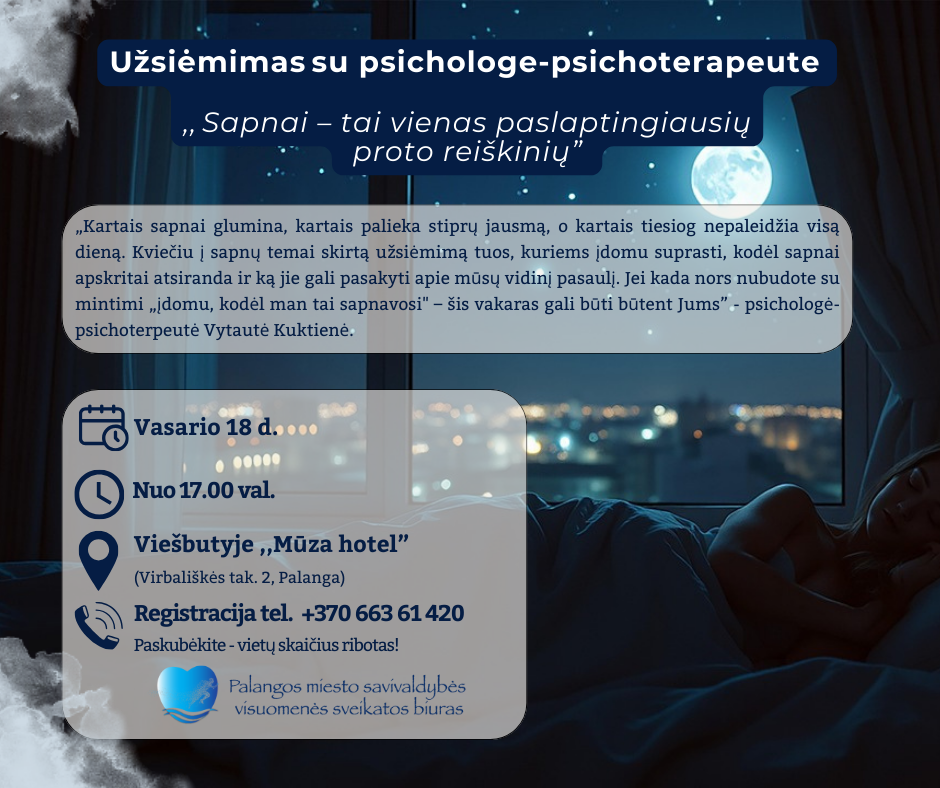 Sapnai – paslaptingi, kartais keisti, kartais labai tikri. Jei smalsu, kodėl jie atsiranda ir ką gali pasakyti apie mus – kviečiame į …