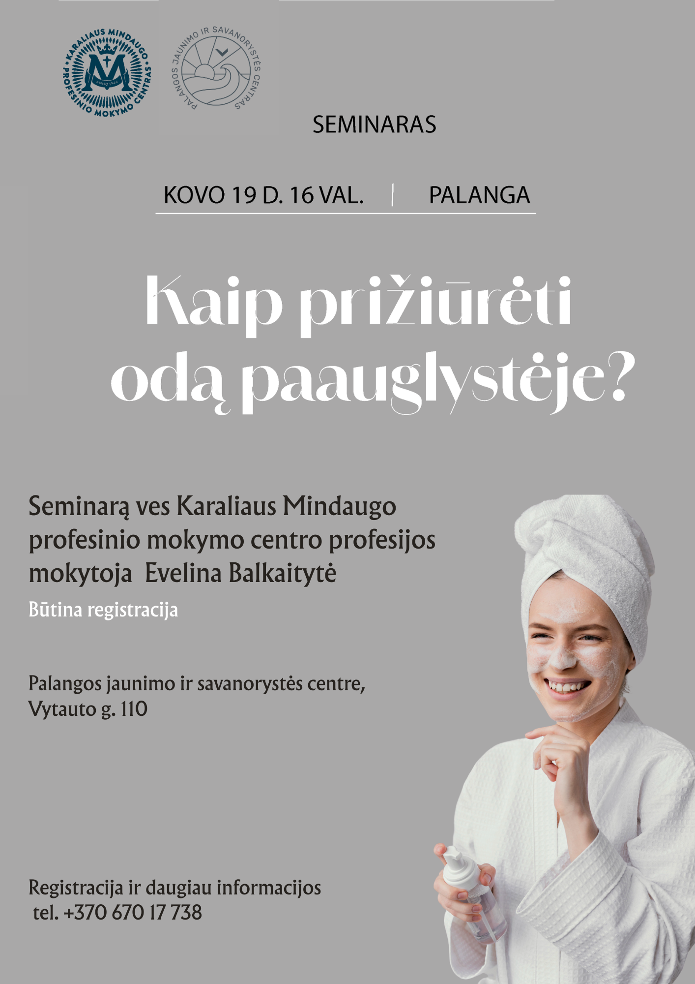 Palangos jaunimo ir savanorystės centras kartu su Karaliaus Mindaugo profesinio mokymo centru kviečia jaunuolius į seminarą apie kasdienę odos priežiūrą! Nori pagaliau …