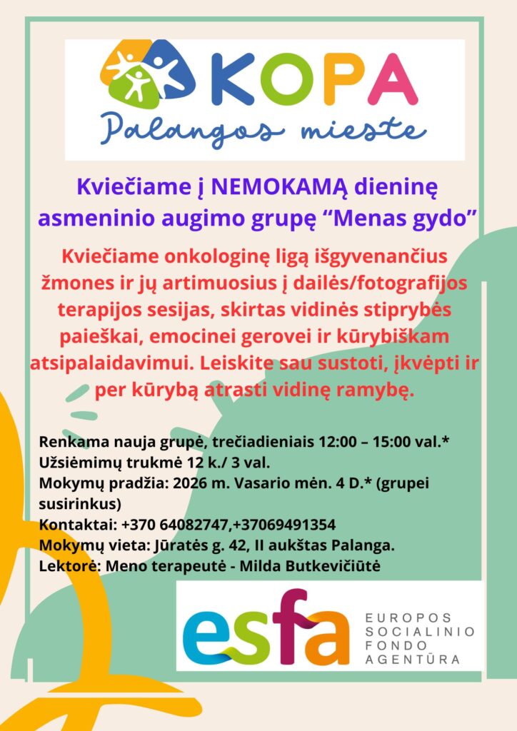 Dailės / fotografijos terapijos sesijos onkologine liga sergantiems žmonėms ir jų artimiesiems