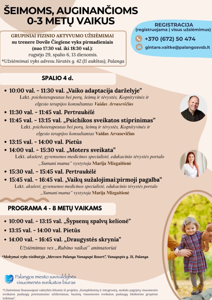 Kviečiame šeimas, auginančias 0-3 metų vaikus, į nemokamus mokymus! Kol tėvai mokysis ir tobulins savo įgūdžius su kvalifikuotais specialistais, vaikai (4-8 m.) leis laiką kūrybiškoje ir linksmų užsiėmimų aplinkoje su animatoriais. Vietų skaičius ribotas, nepraleiskite progos – užsiregistruokite dabar!