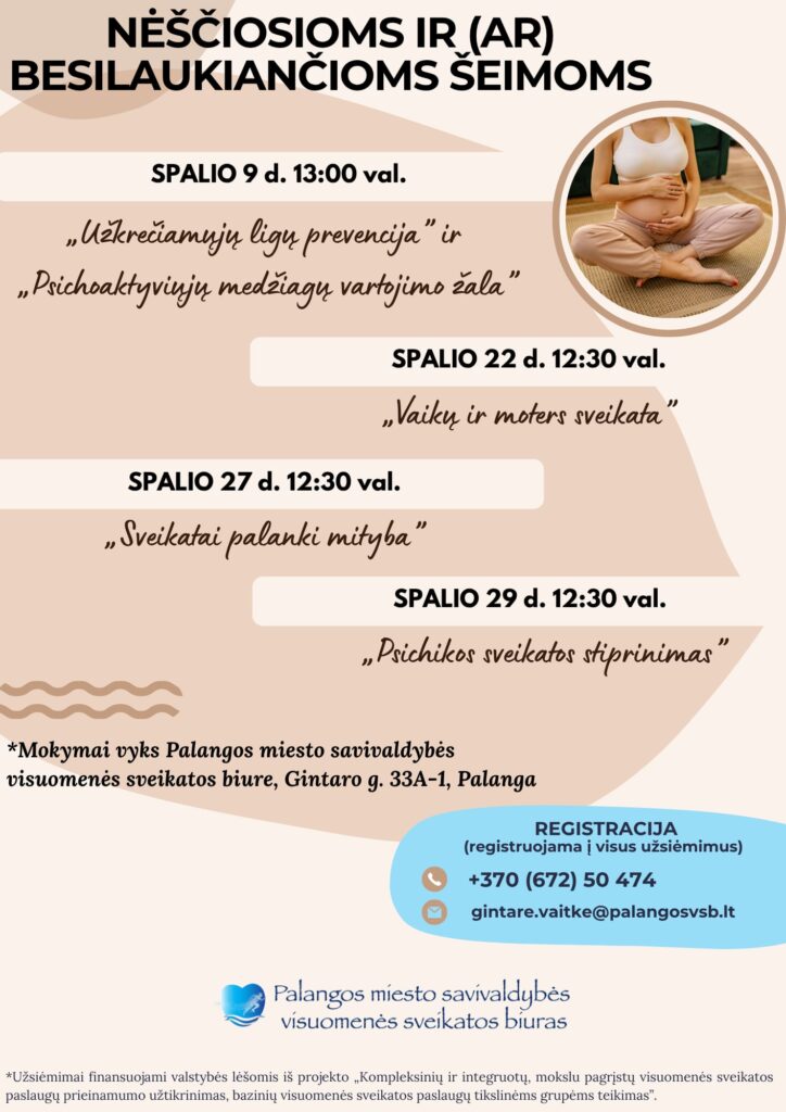 Kviečiame šeimas, auginančias 0-3 amžiaus vaikus, taip pat nėščiąsias ir (ar) besilaukiančias šeimas į mokymus, skirtus šeimos sveikatai ir gerovei stiprinti. Mokymų metu bus kalbama apie užkrečiamųjų ligų prevenciją, psichoaktyviųjų medžiagų vartojimo žalą, moters ir vaiko sveikatą, sveikatai palankią mitybą bei psichikos sveikatos stiprinimą. Šios temos padės geriau pasiruošti vaikų auginimo iššūkiams, skatins sąmoningą požiūrį į sveikatą ir suteiks naudingų žinių, kaip kurti sveikesnę šeimos aplinką. Kviečiame dalyvauti ir pasisemti vertingų žinių, kurios prisidės prie Jūsų ir Jūsų vaikų fizinės bei emocinės gerovės.