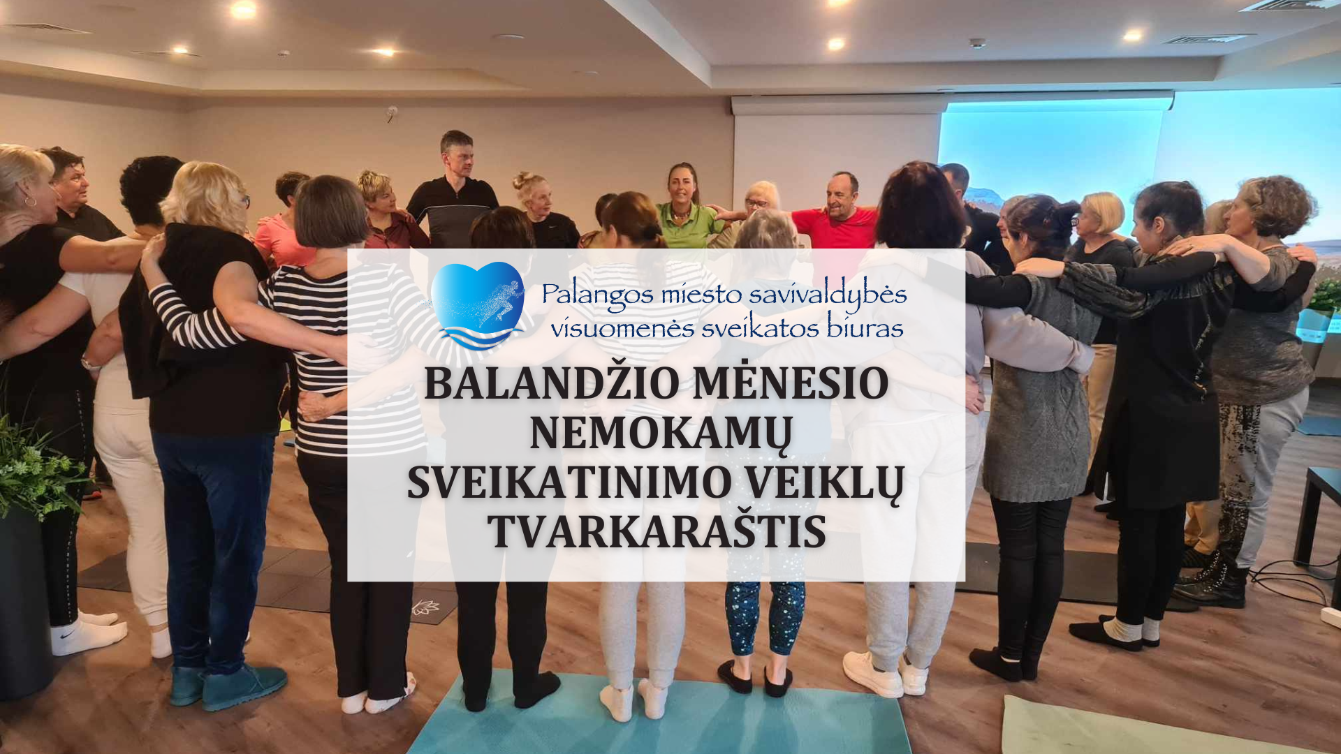 Kviečiame į Palangos miesto savivaldybės visuomenės sveikatos biuro organizuojamas nemokamas sveikatinimo veiklas balandžio mėnesį. Su tvarkaraščiu galite susipažinti ČIA.