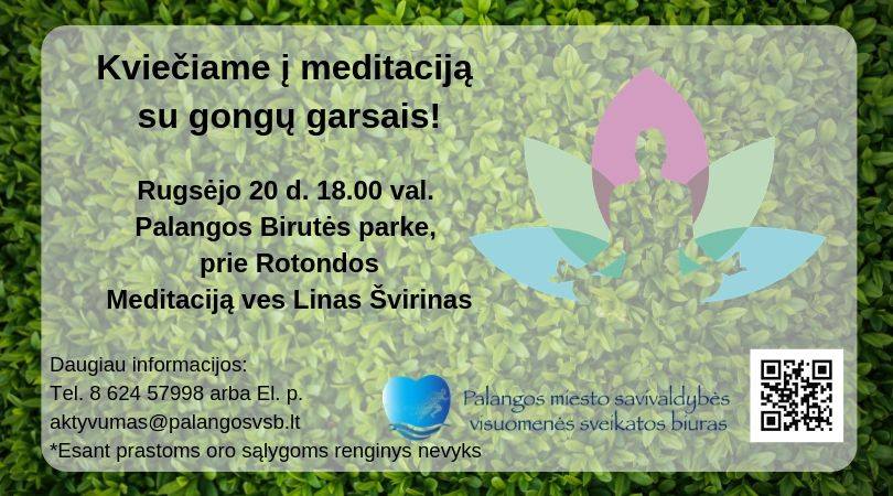 Rugsėjo 20 d. 18.00 val. Palangos Birutės parke, prie Rotondos. Meditaciją ves Linas Švirinas. Daugiau informacijos Tel. 8 624 57998 arba El. …
